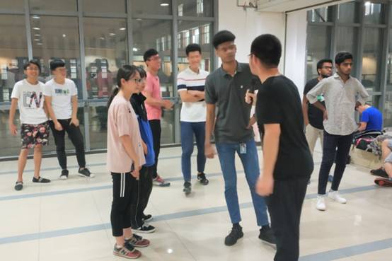 5月3日晚,机电院于明志楼二楼大厅前开展中外文化沙龙之第三期英语角活动,机电院全体2018级国际生参与此次活动。