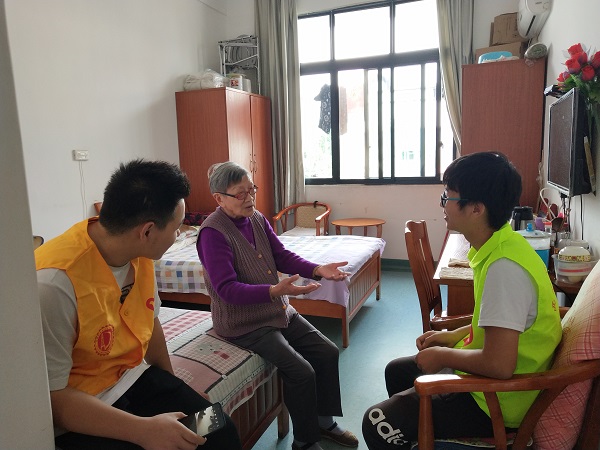图一:志愿者们和老人聊天