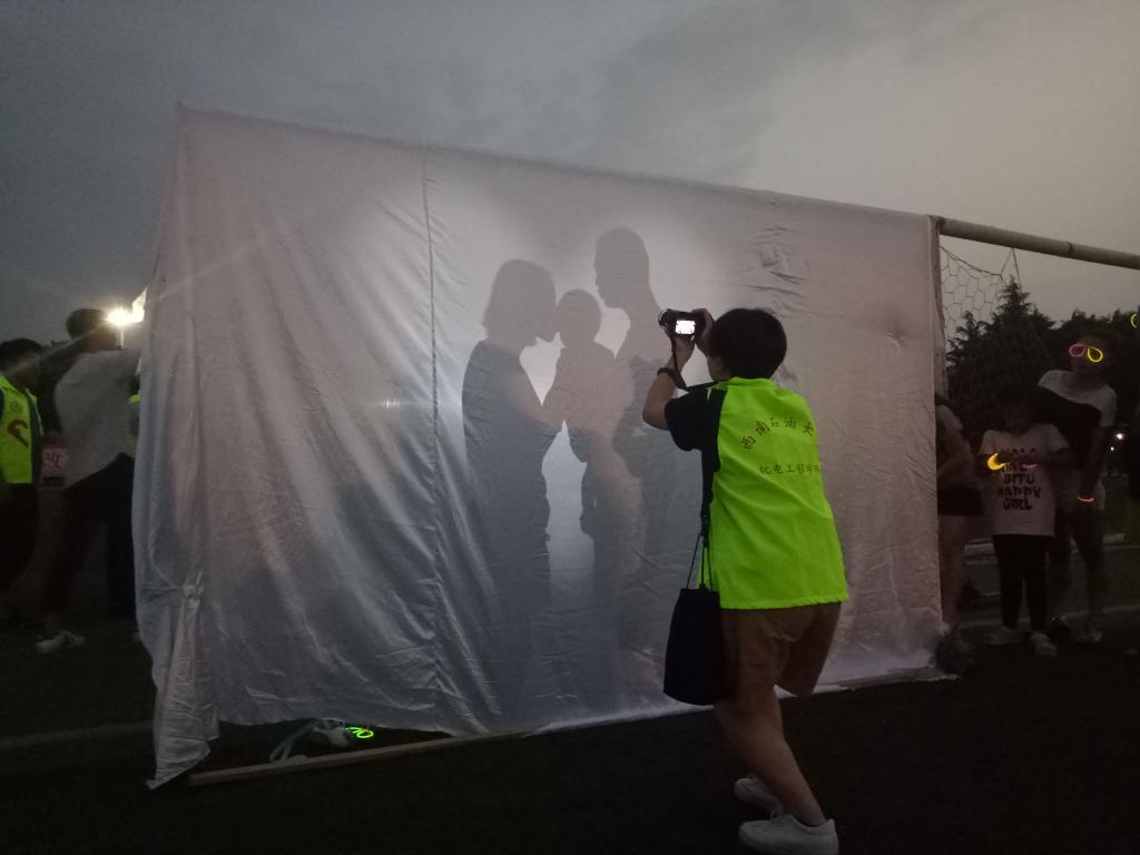 本次活动是公益性质,尤为值得一提的是,本活动不仅为情侣开放,而且为家人、朋友开放。为了使活动更加完善,青志协的成员们为此做了充分的准备。如在活动开始的前两周便写好了策划,活动前一周青协成员便开始通过官Q、空间说说、摆摊发宣传单等方式进行了广泛宣传,并迎得了大家的积极响应。活动正式开始的前半小时,准备已就绪。专业摄像机、现场打印照片、赠送的美丽鲜花,活动热火朝天的进行着。就算夜里热浪涌动,也毫不影响这美好的一切,白色幕布上投射出的各具特色的剪影,相机使幸福的瞬间定格为永恒,一切都井然有序地进行着。不知不觉,活动便接近了尾声。最后在这块幕布前,青志协也留下了永恒。