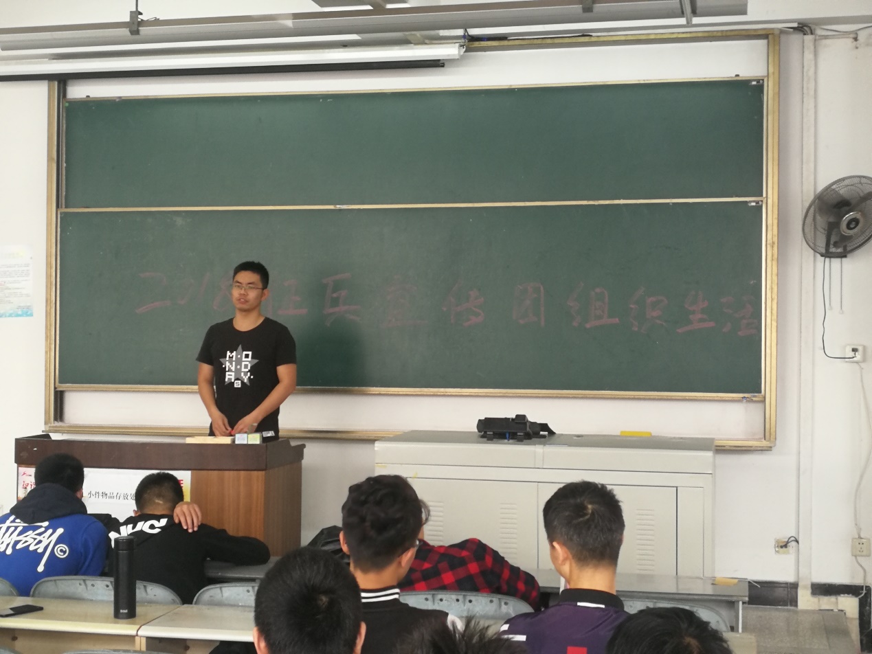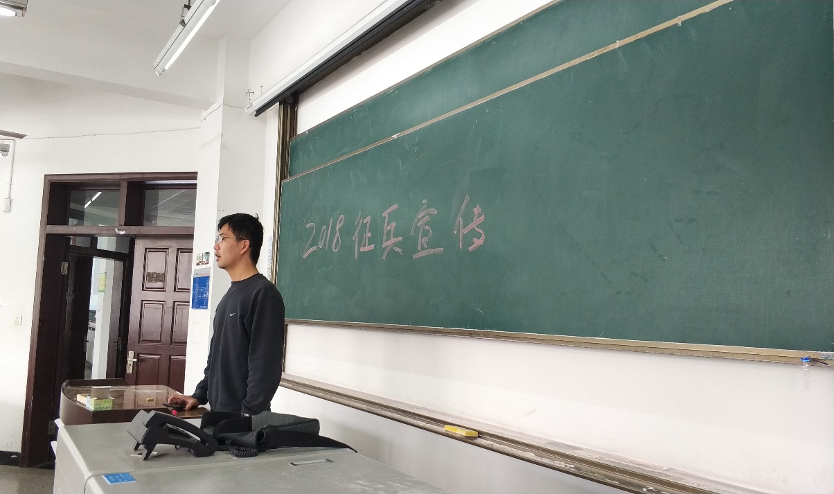在王老师的讲解后,已退伍的两年兵2015级测控技术与仪器专业的学生郑伯军在会上给同学们分享了自己参军生涯。他回忆了自己在军营中的点点滴滴,他讲道,“当兵虽然很辛苦,但是现在回想起来在队伍的日子,无论是在精神还是身体上都得到了极大的提升,所有的辛苦都是值得的。当兵后悔两年,不当兵后悔一生!”