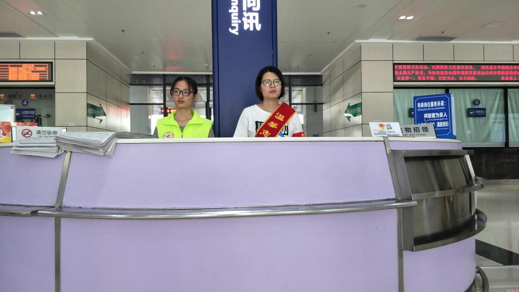 图3志愿者在客运枢纽站前台提供咨询
