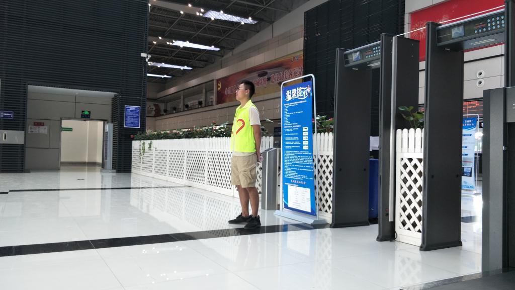 图1志愿者在安检口协助工作人员