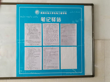 为进一步加强学风建设,提升学院人才培养质量,西南石油大学机电工程学院于本学期开展 “晒笔记、晒规划、亮学风---好笔记好作业评选活动”。本次活动主要包括收集优秀笔记,扫描后上传到网盘,实现全院同学线上笔记资源的共享。在学习氛围相对较差的寝室有针对性地设立线下笔记驿站,供同学们在寝室交流、学习,进一步落实学院的学风建设工作。在活动的后期,将根据笔记的准确性、详实性、条理性、美观性评选出10位笔记达人。