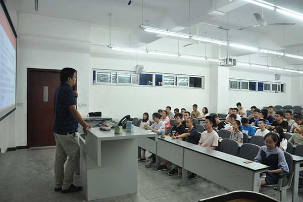 图一:章志华老师向志愿者同学们传达大赛事宜