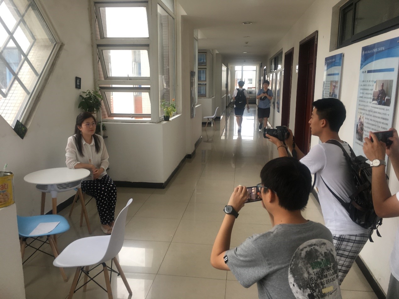 实践队员们内部自行分组,分别负责拍摄老师,学生和后勤人员。从6月26日至今,无论是温和的天气,还是烈日当空,各个小队队长坚持带领队内组员在校园内积极寻找联系拍照人员。学生组频繁出没于奶茶店,食堂等地,学生们也十分配合,真诚地表达出对学校的祝福;而负责拍摄学校后勤人员的组员也克服阻碍,一遍又一遍地抽空去寻找食堂阿姨,门卫等人,配合他们空闲的时间;负责拍摄老师的组员也抽出时间在四大名楼,思学楼和博学楼寻找有空老师,老师们也都很赞成拍摄,纷纷放下手中的工作,积极配合我们的工作。实践队员们找到了机电院团委副书记章志华老师,老师说:“甲子学府。盛世华章,祝愿石大再创辉煌。”章老师的一句话也体现了全体实践队员和全校师生的共同愿望,希望学校在今后的成长道路上更加进步。(文/任杰隆 图/邵自豪)
