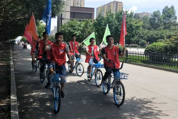 2018年7月5日下午一点半,生命之花实践队开展了以禁毒防艾为主题开展了此次实践活动。本次活动分为骑行,禁毒宣传以及邀请路人写下对艾滋病人关心的话。本次活动由队长周丹带队,全员参与。