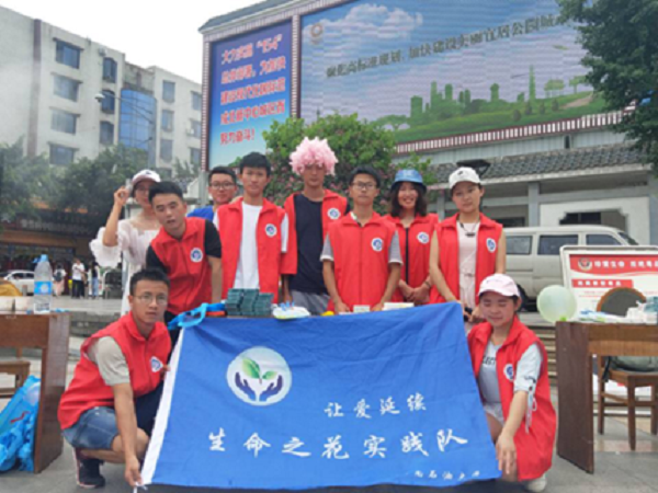 2018年7月7日午十一点,生命之花实践队开展了以禁毒防艾为主题开展了此次实践活动。本次活动是以摆摊、有奖问答、游戏竞猜等形式在桂湖的黄桷树广场展开。本次活动由队长周丹带队,全员参与。