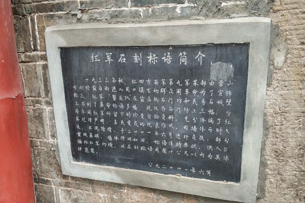 一入古镇,便被它极强的代入感所折服。虽然周遭市井气息浓厚,但古镇却丝毫不受影响,朴素的建筑,白墙黑瓦,淳朴的民风,无不让我感到亲切。走进古镇的第二条街便是红军街,街口的红色木牌上有关于红军街的由来:“原名盐店街,主要用于盐商囤积交易食盐。1933年秋,红四方面军第九军曾在此驻扎并留下许多宣传标语。为纪念红军,更名为红军街。”街头结尾各放置一个石缸,岁月磨平了它的棱角,苔藓覆盖了它的全身,刨去部分苔藓,可以看见缸上刻着的人像,像是讲述着一个故事,但是什么样的故事,我们却不得而知。街尾的红军石刻标语简介也向我们诉说了一段壮烈的历史……