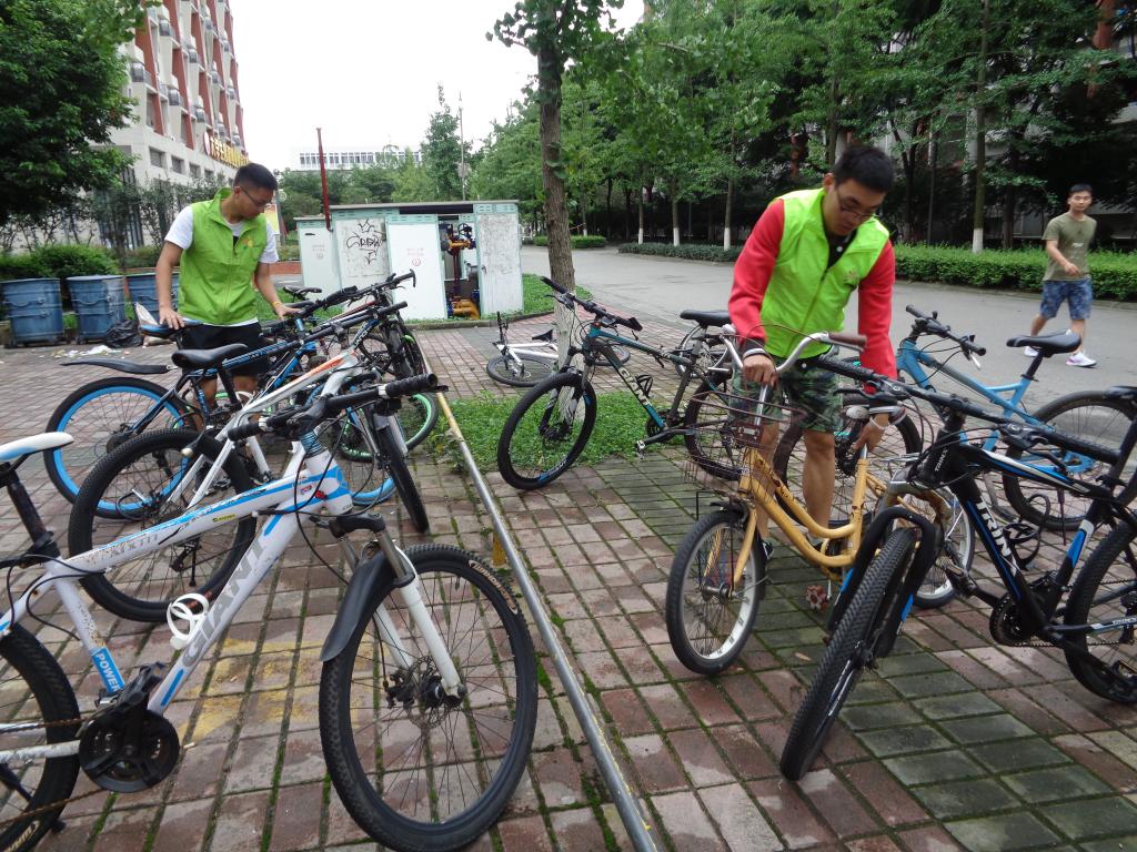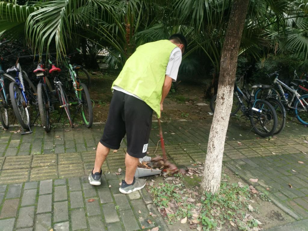 队员们迫不及待从二期操场出发,对草坪,篮球场等地方的卫生死角进行垃圾清理。同时也对路边乱停的自行车进行了耐心整理。烈日当头,队员们早已汗流浃背,队员们只能一边清洁一边聊天以缓解酷热,小小的举动为校园增添不少“美丽”。在清洁过程中,队员们互帮互助,同时也深刻的体会到了校园卫生的保洁的不易。