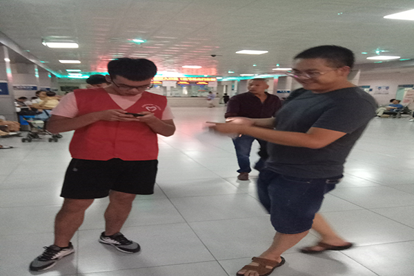 公益心队今天的任务依旧是帮助患者使用自助服务终端机,通过对机器的一些了解,队员们掌握了如何使用自助服务终端机对携带身份证但未办理就诊卡的患者提供建卡服务,帮助医院进一步推行实名制医疗制度。同时小部分同学在护士的带领下也对医院的各科室位置有了了解,并在就诊大厅帮助患者找到自己该去的科室。