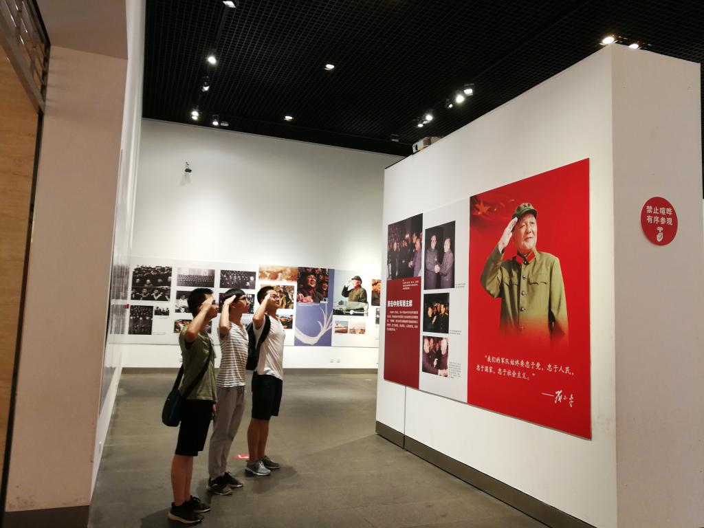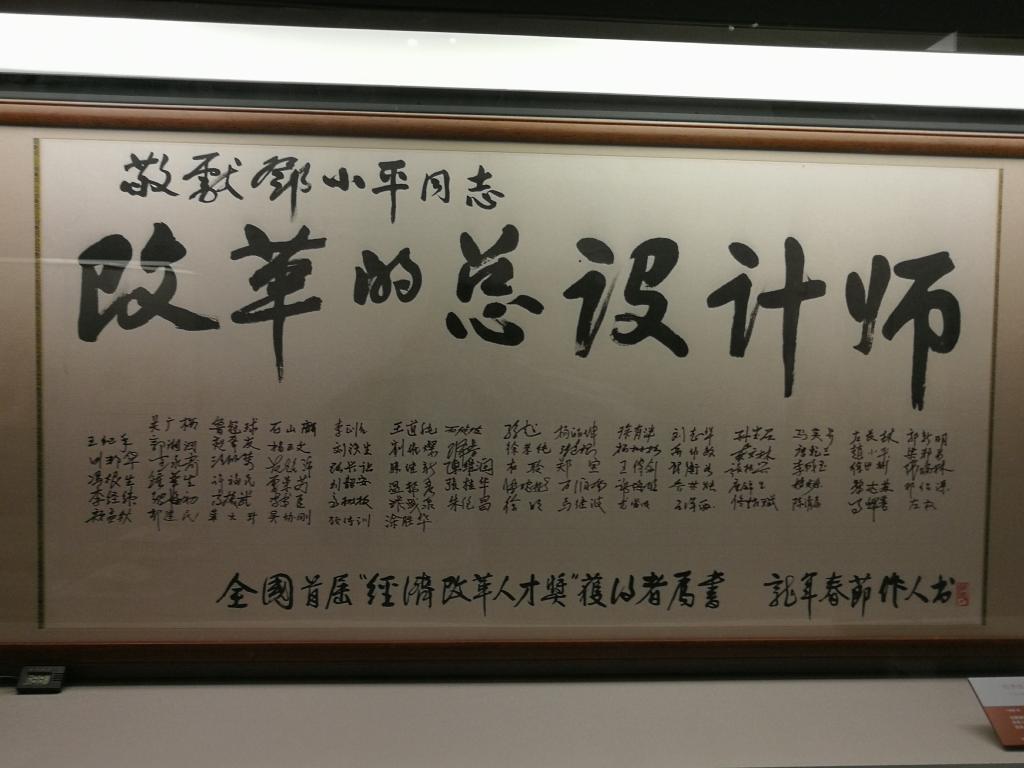 在邓小平生平展厅里一进门就看到一张巨大的邓小平爷爷敬礼的图像,队员们也不禁向着小平爷爷回礼表示尊敬与爱戴。陈列馆里许许多多小平爷爷用过的东西,一纸文件的认真回复,一件衣服与一双拖鞋的破旧都无不表明着小平爷爷的为人民服务,不奢求生活的享受。当我们来到最后一个展厅一个巨大的邓小平雕像屹立在大厅中心,旁边就是小平爷爷最让人敬佩的一句话“我是中国人民的儿子,我深情地爱着我的祖国和人民”,旁边还有导游在为游客们讲解,我们实践队员们也不禁靠过去深深了解小平爷爷。然后我们在陈列馆里留下了想对小平爷爷说的话,再看旁边调查问卷上也满载着游客对小平爷爷的爱戴。