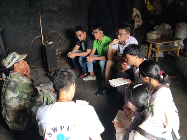 当日上午,大家联系到了村书记——伍文光(裸伍萨破)。在说明了来意之后,伍书记热情的招待我们,并乐意与我们交流店子村后面的规划。我们一行人先是到访了一家农户,并在该农户家里详细的交谈店子村的规划。他说到:“我们现在店子村已经脱贫了,现在的发展重点为当地产业。目前我们村的经济发展还是以前的模式,以种植花椒和核桃为主,作为主要的经济来源。我们的规划是将大桥水库边的耕地开垦出来,种植南苍术。国家已经决定拨款一千三百六十万作为土地的石块清理和治理费用。我们的村干部和党员正在示范种植,做好带头作用,并且正在和重庆太极集团联合,厂家直接收购产品。此外,当地的大桥水电公司也在对店子村积极作出贡献,捐出三百六十二万作为水库边的防洪堤修建,此时正在招标。对当地的水电专业大学生采取优先考虑政策,鼓励当地孩子学习。在教育方面,我们正在修建幼儿园,做到家家户户的孩子学前教育无忧。同时根据国家规定,确保让每一个孩子能够完成义务教育。在村民的文化建设上,村上正在筹建图书馆和博物馆,并已经获得资金。在后面几年,我们将在店子村四组修建三个具有民族特色的定居点,将村民全部安置其中,做好生活文化的管理。在环境方面,每一个组都有垃圾定点收集,并且将其统一运送到州上的处理地处理。当地没有工厂,水质优越,且有专门的巡山员,保护森林和动物。在医疗方面,国家对每一户进行补贴,每一个人都能够享受到农村医保。在人文素质上,村里将在村民统一安置好后安排和导员和志愿者对他们进行引导。与此同时,乡村旅游同时跟进,带动家乡经济发展。在民族文化上,民族的特色节日将一直延续,民族的习俗会一直保留,民族语言文字,将在博物馆和学校代代相传。”在交流的最后,伍书记向我们保证,在2019年以内,土地规划将会取得完善和实施,在五年以后,店子村将会是一个崭新的面貌。
