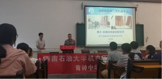 7月14日至7月25日,机电工程学院油气装备技术及智能化研究室全体师生为加强西南石油大学与青神中学两校情谊、提高两校学术科研氛围、宣扬我校“为祖国加油,为民族争气”的奉献精神,赴青神中学进行学术交流联谊活动。本次活动由机电工程学院组织开展,硕2016级第一党支部协助,黄志强老师带领油气装备技术及智能化研究室全体师生参加。