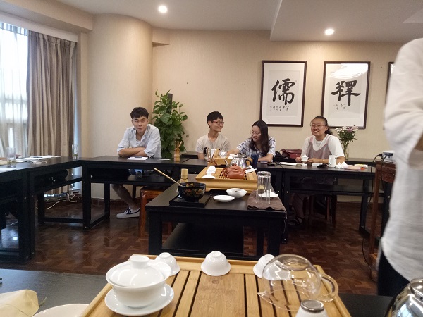随后,沝焱队全体队员与宽和茶馆馆主何修武对茶文化进行了深入交流,何馆主为同学们解答了很多心中的疑问,并告诉队员宽和茶馆的主旨在于面向更多的年轻人,用一种轻松的方式让更多年轻人喜欢上茶,爱上茶,并在潜移默化中传播我们的茶文化,这与沝焱队从雅安到成都,跋山涉水只为探寻茶文化,宣扬茶文化的理念相契合。