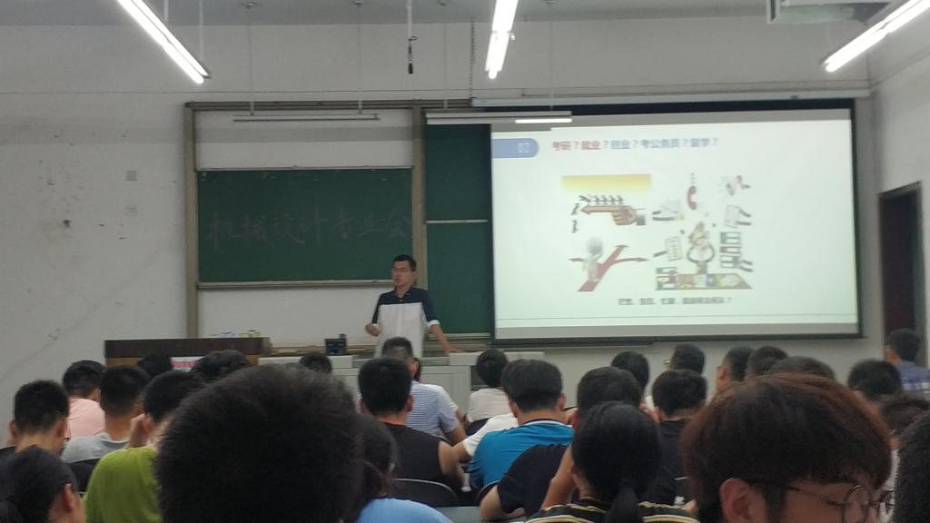 校园打破了连日来的宁静,全校师生结束了暑假,回到学校全力以赴投入到工作学习中。为了更好的开展新学期的工作,让同学们尽快的投入到学习中,机械设计2016级辅导员冯沉诚在今晚召开了专业大会。