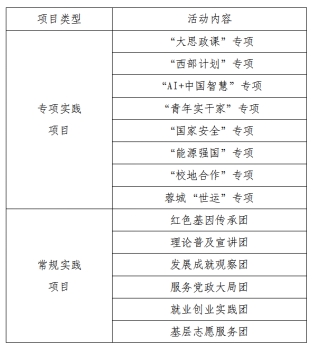 2025年西南石油大学暑期社会实践活动设置专项实践项目和常规实践项目两大类,通过“专项+常规”的组织模式,系统化开展实践,将暑期社会实践打造成为青年师生“受教育、长才干、作贡献”的“大思政精品课”。