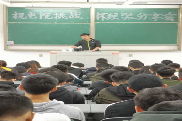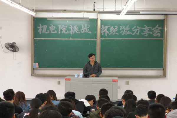 2018年10月11日由机电工程学院创新创业俱乐部举办的机电院“挑战杯”经验分享会在明志楼A301成功举办。在活动上,伍建川老师鼓励大家积极参与比赛丰富自己的大学生活,李国栋和陈印两位学长讲述了他们的经历,为参会的学生未来的大学生涯规划提供了很大帮助。此次分享会的目的是为了让大家在比赛前做好充分的准备,在比赛中能取得一个好成绩。