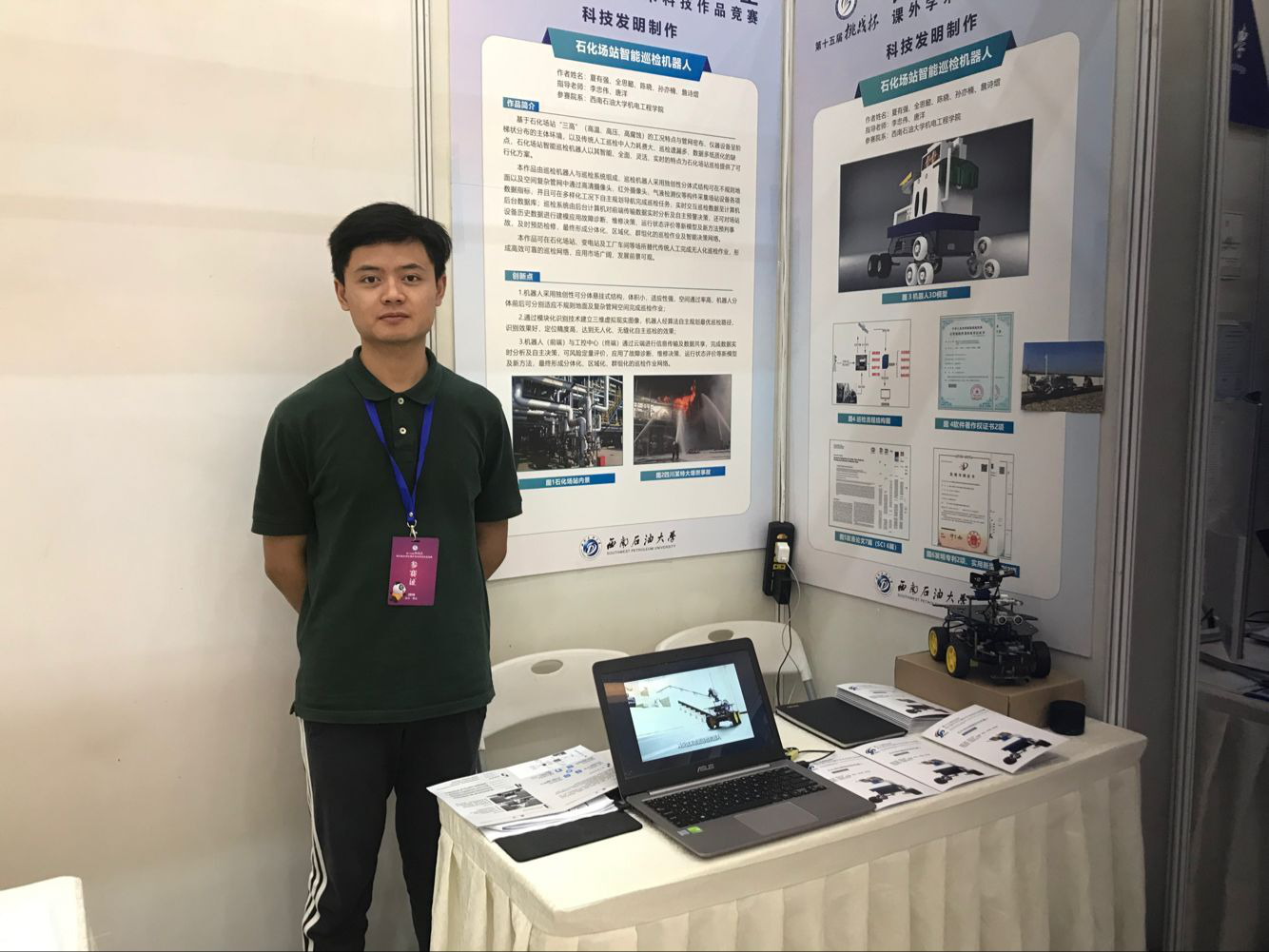 四川省挑战杯竞赛历经三天,分为省级初赛、省级决赛两个阶段,其中省级初赛1013件作品以网络评审的方式评出决赛参赛作品400余项,决赛在现场举行评选一、二及三等奖。机电学子在决赛期间表现优异,机电工程学院的“石化场站智能巡检机器人”项目荣获科技发明制作A类的省一等奖,为我院本次赛事最好成绩。