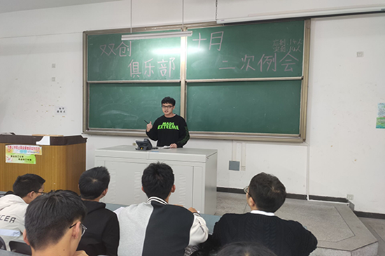 2019年10月24日机电院双创俱乐部开展了十月份第二次例会。例会如期正常有序地进行,严肃而不死板,温暖有温度,也有始终如一的有序简练的工作总结和新工作的安排。
