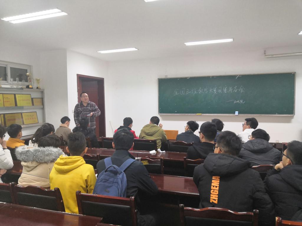 会上,刘洪斌老师首先强调了外出的纪律问题,一切行动听从老师的安排。然后从谈到了比赛的注意事项,从参赛承诺书、PPT的拷贝、答辩人的着装再到问题的回答技巧上给予了参赛团队们细心的指导和建议。最后伍建川老师补充道:“外出参赛,成绩固然很重要,但是安全更重要,作为青年学生也要注意外出的形象问题,不能做一些有违青年学生道德的事情,这关乎个人更关乎学校声誉”。