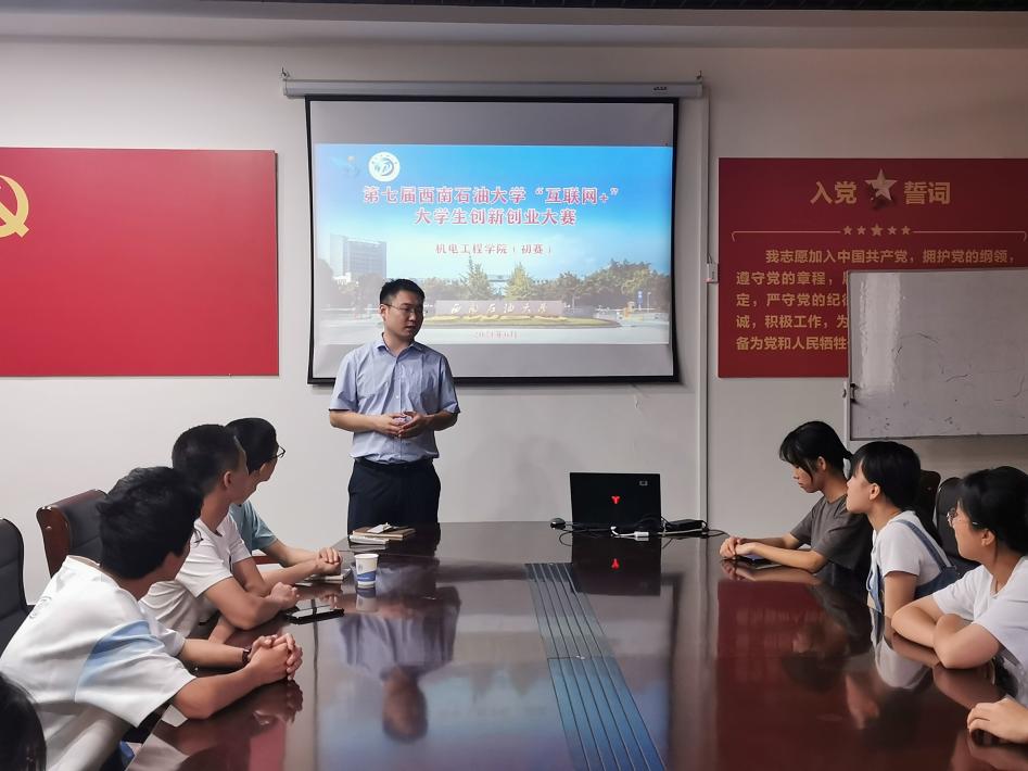 为加深学生对于创新创业竞赛的了解程度,同时推动学院创新创业竞赛工作开展,更好地做好我校第七届“互联网+”大学生创新创业大赛优质项目遴选工作,机电工程学院于6月7日晚7点在明志楼B504开展了第七届西南石油大学“互联网+”大学生创新创业大赛学院初赛。