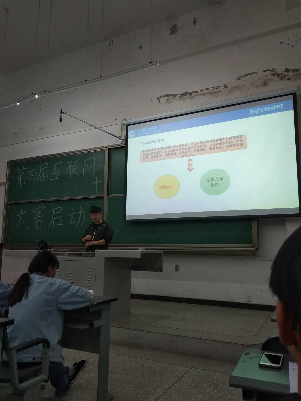 紧接着由伍建川老师为我们介绍了前几届大赛的核心思想、此次大赛的变化以及学院的安排,也为我们详细说明了如何书写商业计划书和修改PPT。同时他也希望同学们能够以创新为核心思想提升自我为主要目的去认真对待每一次比赛,并不是为了去获取学分才不得已参加比赛。