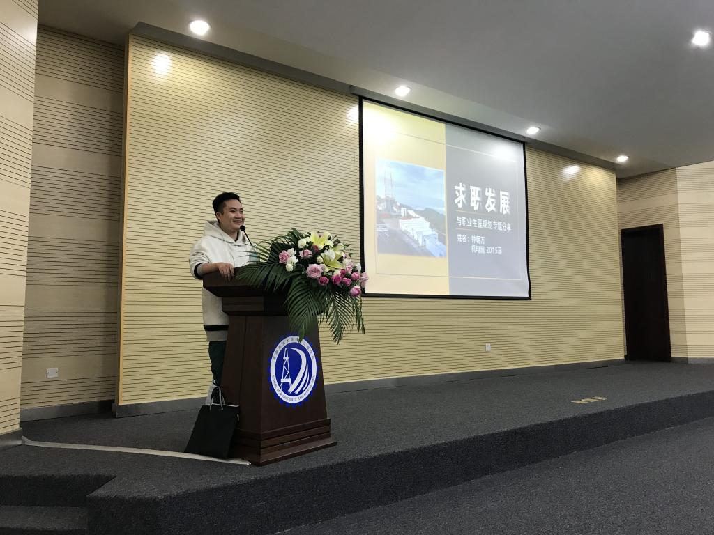 10月25日晚,我院过程装备与控制工程专业2015届毕业生钟朝万在明志楼B105报告厅就求职发展与职业生涯规划开展专题分享会。