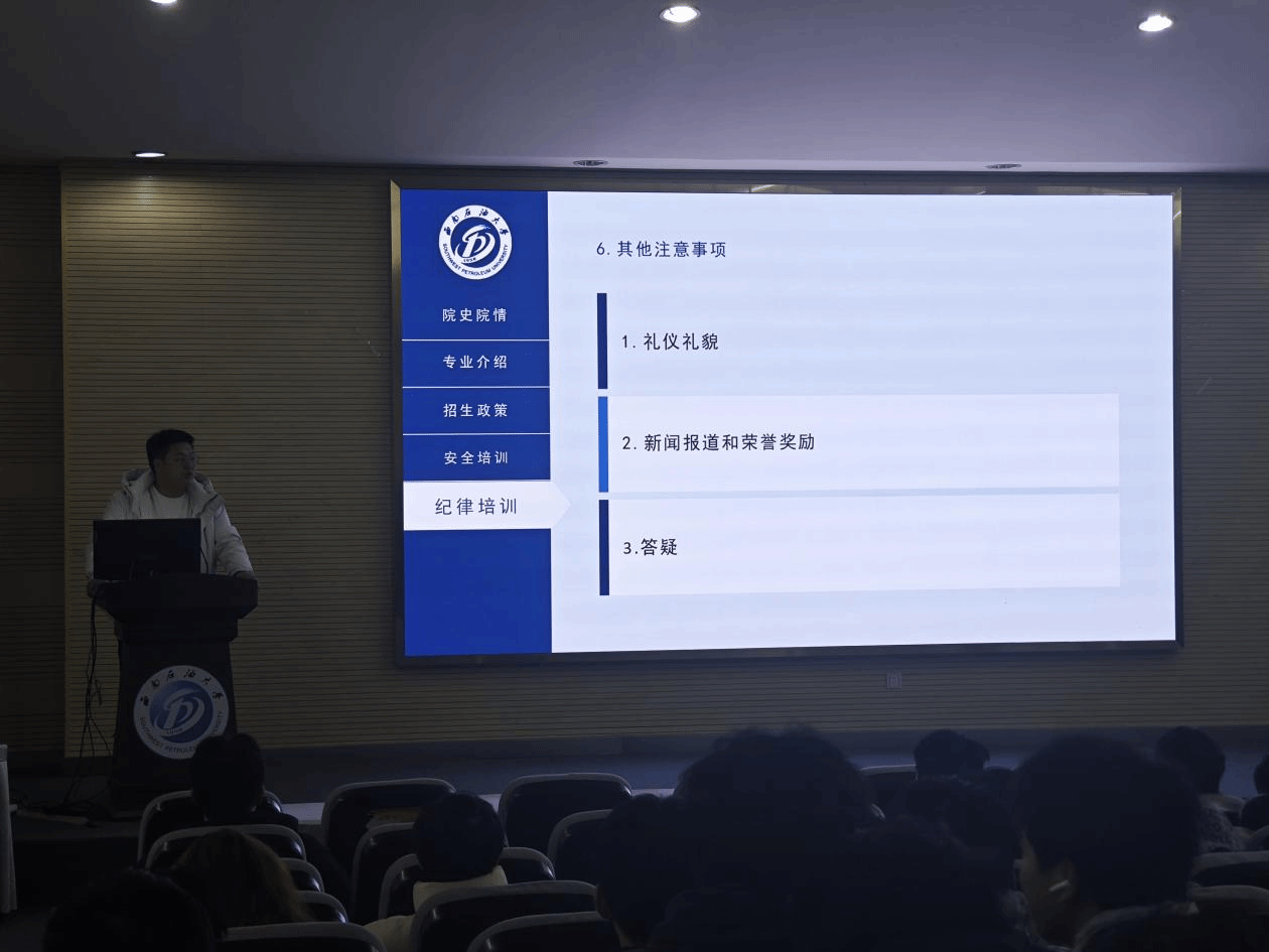 讲座内容紧扣活动核心需求,系统涵盖学院发展概况、各专业特色成果、安全防护规范及宣传工作实务四大模块。在学院与专业情况介绍环节,龚清能老师提纲挈领地讲解了学院历史沿革、师资力量、科研优势及各专业发展历程、办学成效,助力学生精准把握分享核心要点;安全教育模块聚焦寒假活动期间各类安全隐患,通过案例警示强化学生安全防护意识;宣传培训则针对性讲解新闻撰写规范与拍摄核心技巧,提升学生宣传物料产出质量。