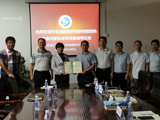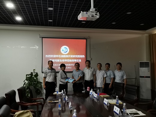8月30日上午,中石油勘探开发研究院地热专家闫家泓教授应邀来我校地热能研究中心进行交流。交流会在明志楼B504会议室举行。地热能中心主任祝效华教授、副主任李皋教授、及杨迎新教授、张安安教授等地热能研究中心成员、硕博研究生参加会议。