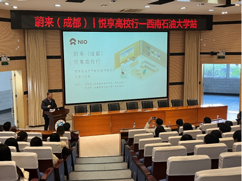 该讲座的主要内容涵盖了新能源汽车行业发展、蔚来设计驱动、蔚来车辆设计理念以及蔚来生态分享等四个主题。出席本次讲座的嘉宾包括西南石油大学机电工程学院党委副书记姚伟宁、副院长石明江,以及工业设计教研室的全体教师和工业设计专业的大一、大二和大三学生。此外,蔚来汽车方面派出了成都蔚来资深专家、商务拓展经理倪国斌和成都蔚来社群大客户高级顾问李津臣作为专家代表出席。