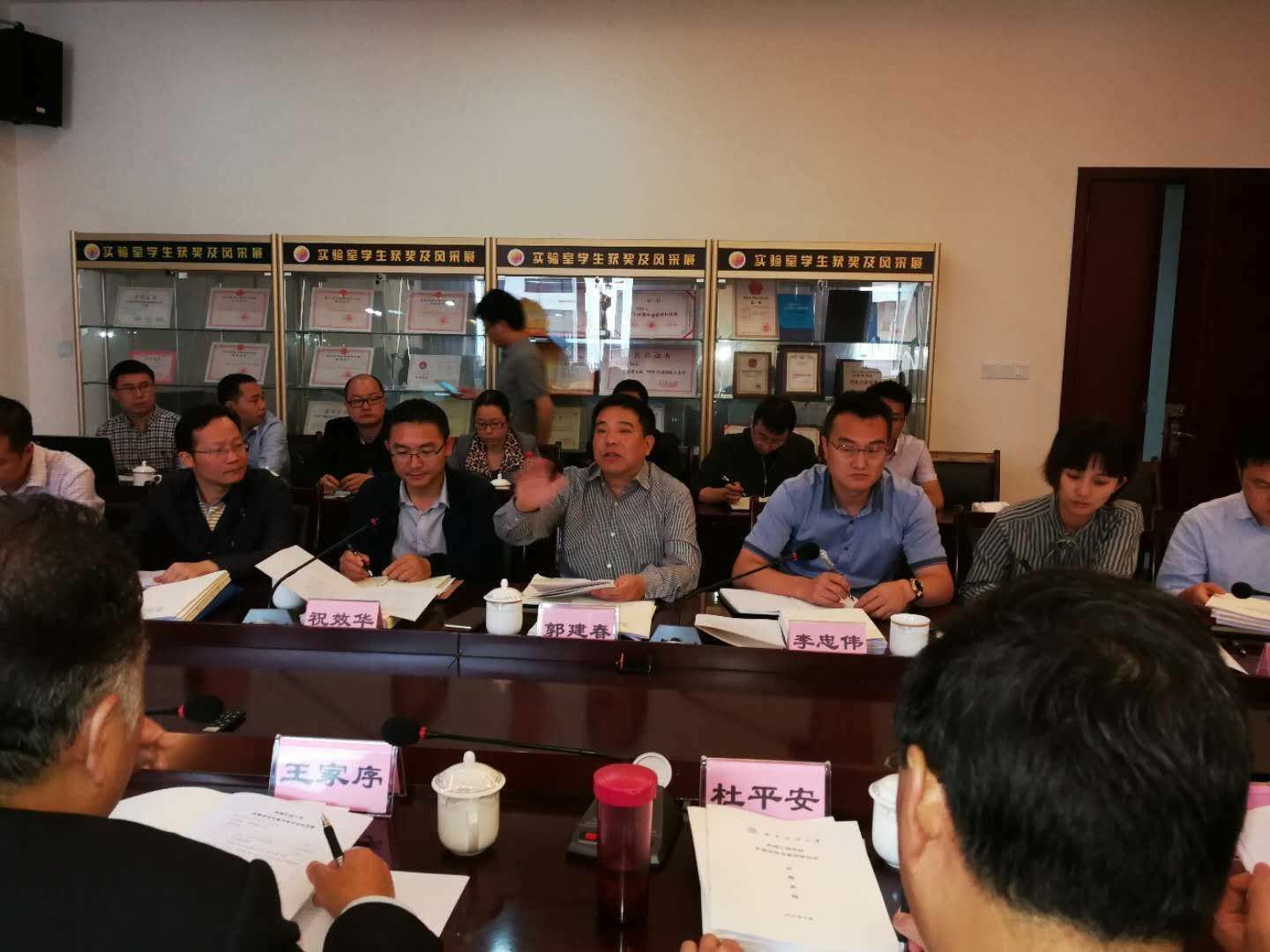 副校长郭建春教授致欢迎词,他向莅临指导的七位专家表达了由衷的感谢,并简要介绍了学校和机械工程学科建设与发展情况,希望与会专家为我校机械工程学科建设、研究生教育和人才培养多提宝贵意见。机电工程学院机械工程学科建设负责人王国荣教授就机械工程一级学科博士学位授权点、机械工程一级学科硕士专业学位授权点自评估工作向专家组进行了汇报。