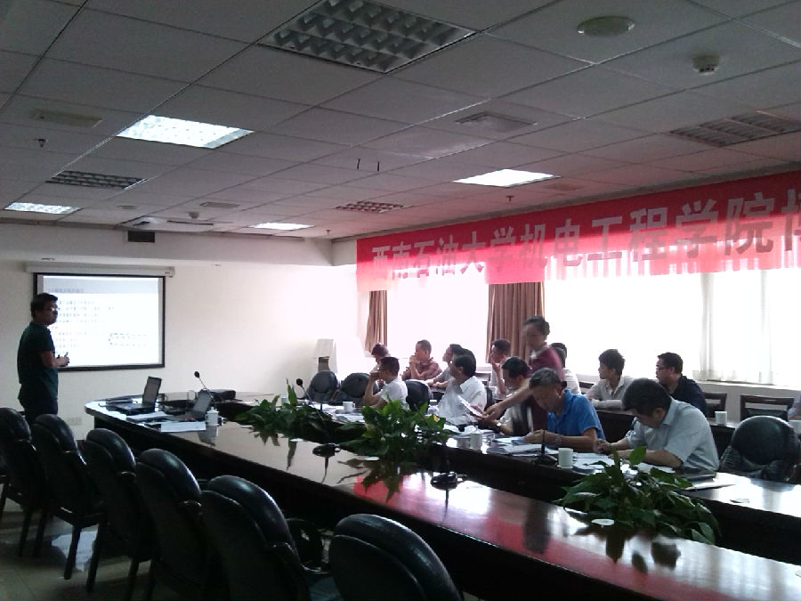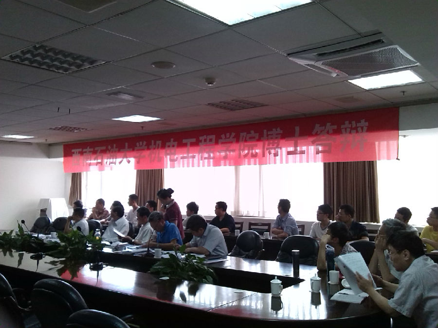 5月29日上午8:30,机电工程学院2014届博士毕业论文答辩在石油缘宾馆四楼会议室准时进行。本次博士毕业论文答辩委员会主任委员由电子科技大学的杜平安教授担任,委员分别是西华大学机械学院院长王进戈教授、机电工程学院院长黄志强教授、梁政教授和张鹏教授,院长助理李成兵老师担任答辩秘书。