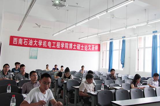 2015年5月24日,机电工程学院2015年硕士研究生学位论文答辩(第二批)在明志楼三楼A区各教室准时进行。参加本次硕士学位论文答辩的研究生共80名,分为八个答辩小组。八个答辩小组组长分别为:西华大学朱维兵教授、电子科技大学黄大贵教授、西南交通大学沈火明教授、中石油宝石集团张斌教授、西南交通大大学丁国富教授、电子科技大学戴跃洪教授、成都理工大学方方教授和成都理工大学杨兰英副教授。8位校外专家来分别担任各答辩小组的答辩委员会主任,答辩委员会其他成员均由我院知名教授、副教授担任。