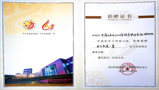 图2:校友捐赠证书