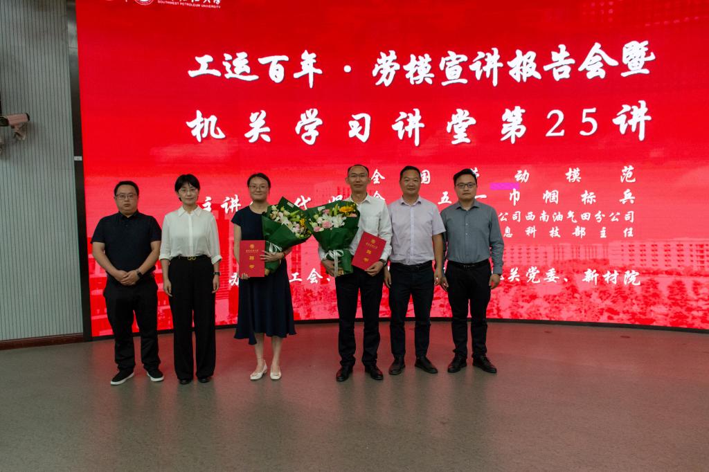 为深入学习贯彻落实习近平总书记关于劳模精神、劳动精神、工匠精神的重要论述,5月22日下午,由校工会、学工部主办,机关党委、新材院承办的“工运百年·劳模宣讲报告会暨机关学习讲堂第25讲”在思学楼C110举行。本次活动邀请到全国劳动模范、西南油气田川中油气矿信息科技部主任、高级工程师代娟(机电2001级校友),为师生带来了一场别开生面的宣讲。机关各职能部门、机电院、新材院教职工代表,学生代表等170余人现场聆听。