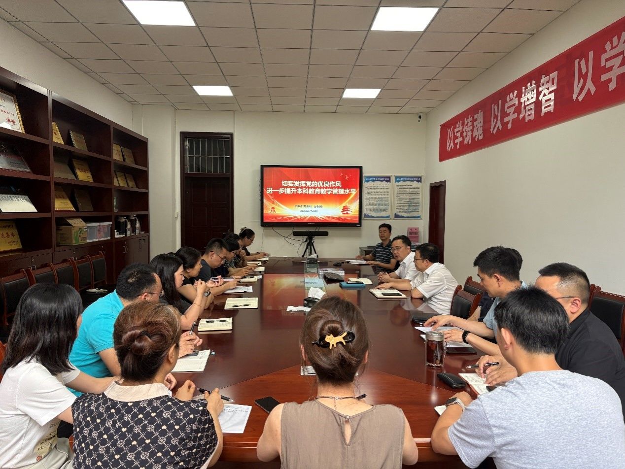 廖柯熹作了题为《切实发挥党的优良作风,进一步提升本科教育教学管理水平》的专题报告,报告回顾了我党“密切联系群众”与“攻坚克难”的优良作风及其一脉相承的光荣传统,深入剖析了红军大学、抗日军政大学、大庆石油会战、川中石油大会战、塔里木石油大会战等历史实践中依靠群众、艰苦奋斗的宝贵经验及其所铸就的“铁人精神”“塔里木精神”。廖柯熹指出,教务处要充分发挥全国教育系统先进集体的先锋模范作用,深刻汲取历史智慧,将党的优良作风转化为推动本科教育教学改革发展的强大动力,着力提升管理效能和服务水平,为培养时代新人、服务国家战略提供坚实保障。