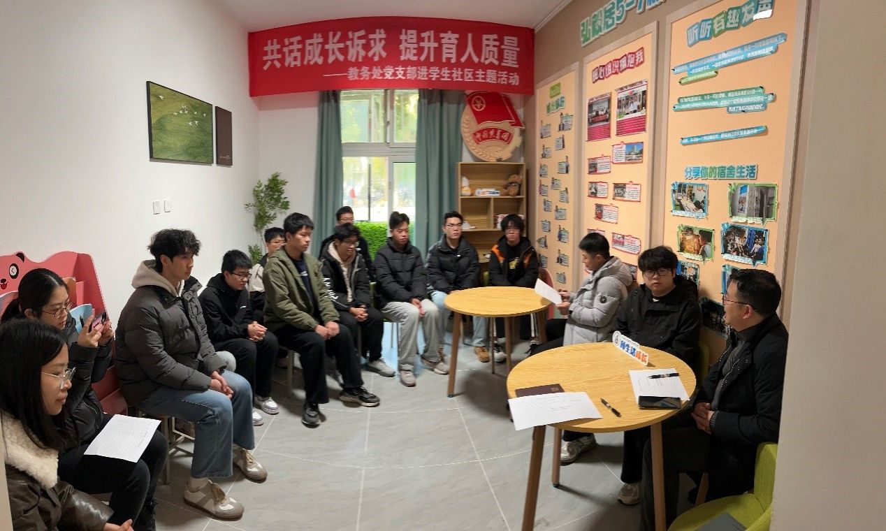 为深入贯彻以生为本的育人理念,精准对接学生成长发展需求,2025年12月4日,教务处党支部走进一站式学生社区,开展 “共话成长诉求,提升育人质量” 主题活动。支部党员与学生代表面对面交流、心贴心沟通,现场氛围热烈融洽。