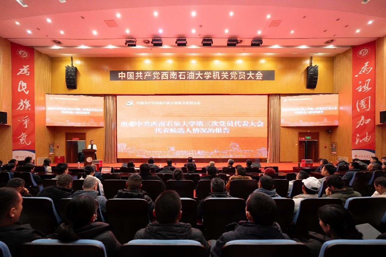 2025年12月8日下午,机关党委在图书馆学术报告厅组织召开机关全体党员大会,选举产生机关出席中国共产党西南石油大学第三次党员代表大会的代表。大会由机关党委书记张凤主持,机关全体党员参加会议。