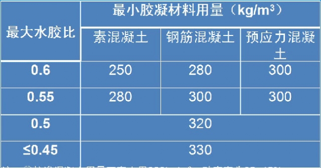 3)《普通混凝土配合比设计规程》JGJ55-2011,混凝土的最小胶凝材料用量的规定:
