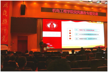 2020年10月20日,机电工程学院邀请学校纪委副书记侯永刚同志为学院全体党员讲党风廉政专题党课。侯永刚书记以《认清反腐倡廉新形势,做知敬畏守底线的合格党员》为题,立足学习、工作和生活,介绍了不同历史时期中国共产党反腐倡廉工作的举措,深刻剖析了党在十八大以来党风廉政建设和反腐败形势以及取得的工作成效,明确强调了明规矩、守底线,自觉保持清廉本色的纪律要求。学院全体党员参加了本次党课学习。