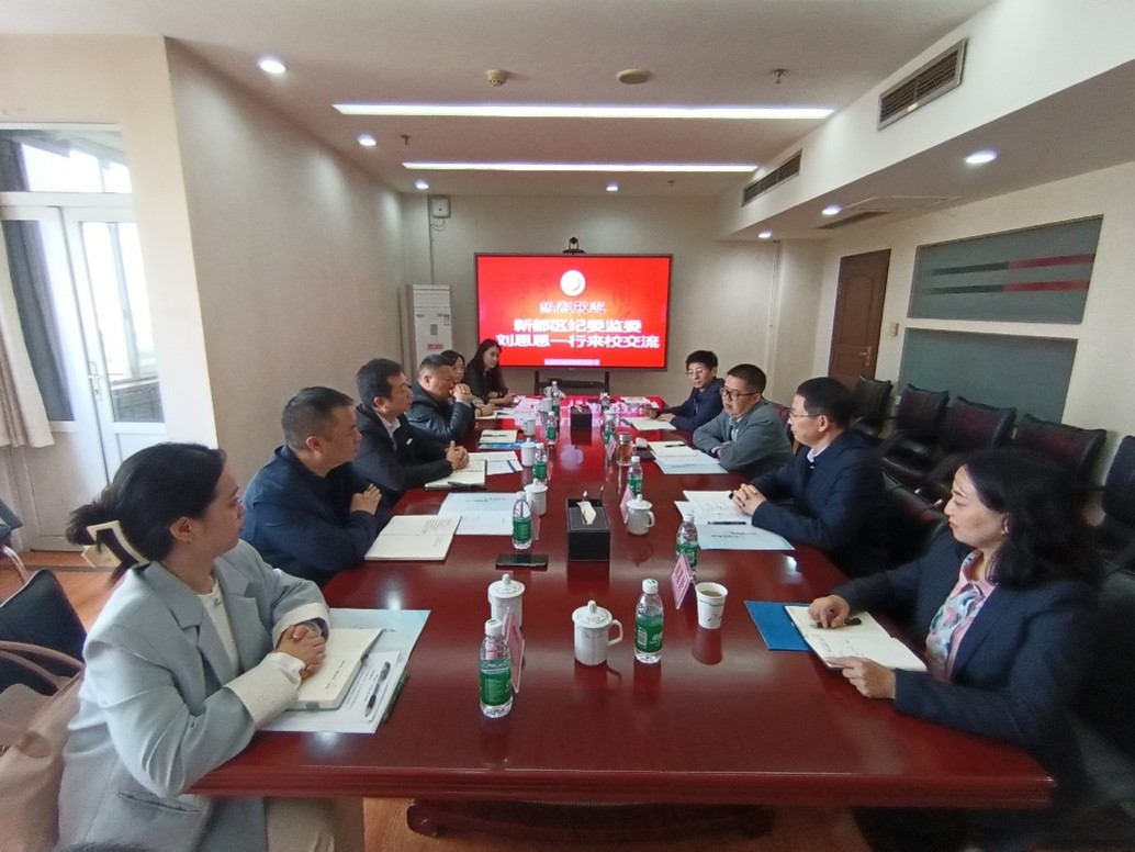 11月1日,新都区委常委、区纪委书记刘恩恩带队来校交流。驻校纪检监察组组长、校党委副书记、纪委书记张明出席并主持座谈会。