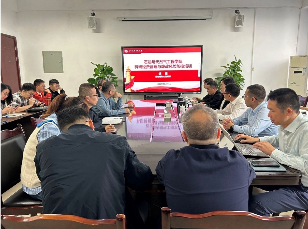 最后,钱广强调:学院科研工作促进了油气田行业进步和地方区域经济发展,学院的各项科研成效也有目共睹,但在规范科研经费使用方面,老师们要认识到科研经费的“公有属性”,把握到科研经费的“项目长负责制”的准确意义,理解到规范使用科研经费即是对学校负责,更是对自己负责,守住红线、不越底线。希望各位老师在规范、安全、合理地使用经费前提下开展各项科研活动,为学院在科研领域争取更大的成绩。