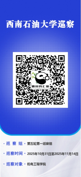 按照校党委要求和巡察工作领导小组安排,校党委第一巡察组从2025年10月31日至11月14日对机电工程学院党委开展巡察。根据巡视工作条例和《中共西南石油大学委员会巡察工作办法》规定,巡察组巡察期间受理反映机电工程学院领导班子及成员、下一级党组织主要负责人等干部问题的来信来访,重点是关于违反政治纪律、组织纪律、廉洁纪律、群众纪律、工作纪律、生活纪律以及违反中央八项规定精神方面的举报和反映。对其他与巡察工作无直接关系的个人诉求,转交被巡察单位和有关部门处理。师生员工如有举报和反映问题的,可以通过电话、电子邮箱、扫描“四川码上巡”二维码等渠道与巡察组联系。