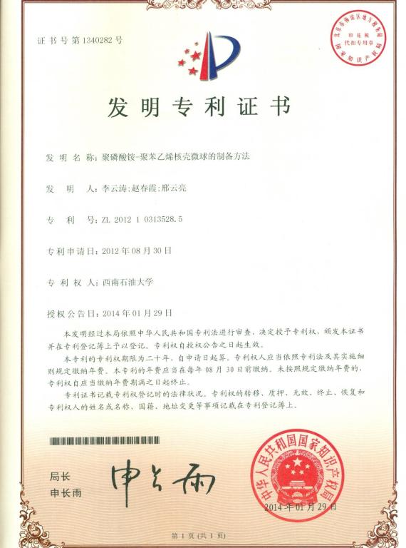 发明专利:聚磷酸铵-聚苯乙烯核壳微球的制备方法