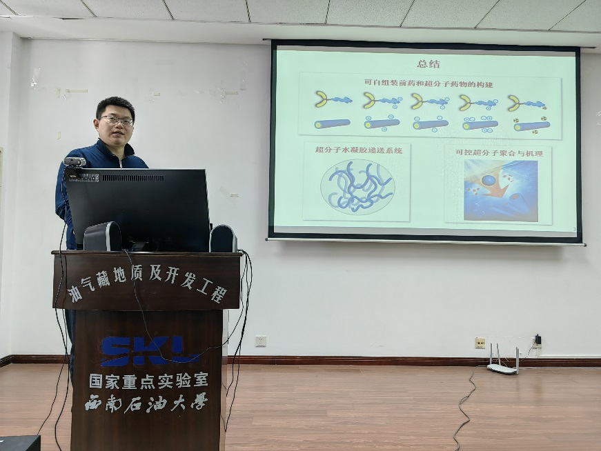 3月24日上午,四川大学苏浩研究员应邀在国重室A403作了题为“可自组装前药:从超分子聚合物到超分子药物”的学术报告。报告由新材院院长助理向东主持,新材院和其他学院相关师生参加了此次报告。