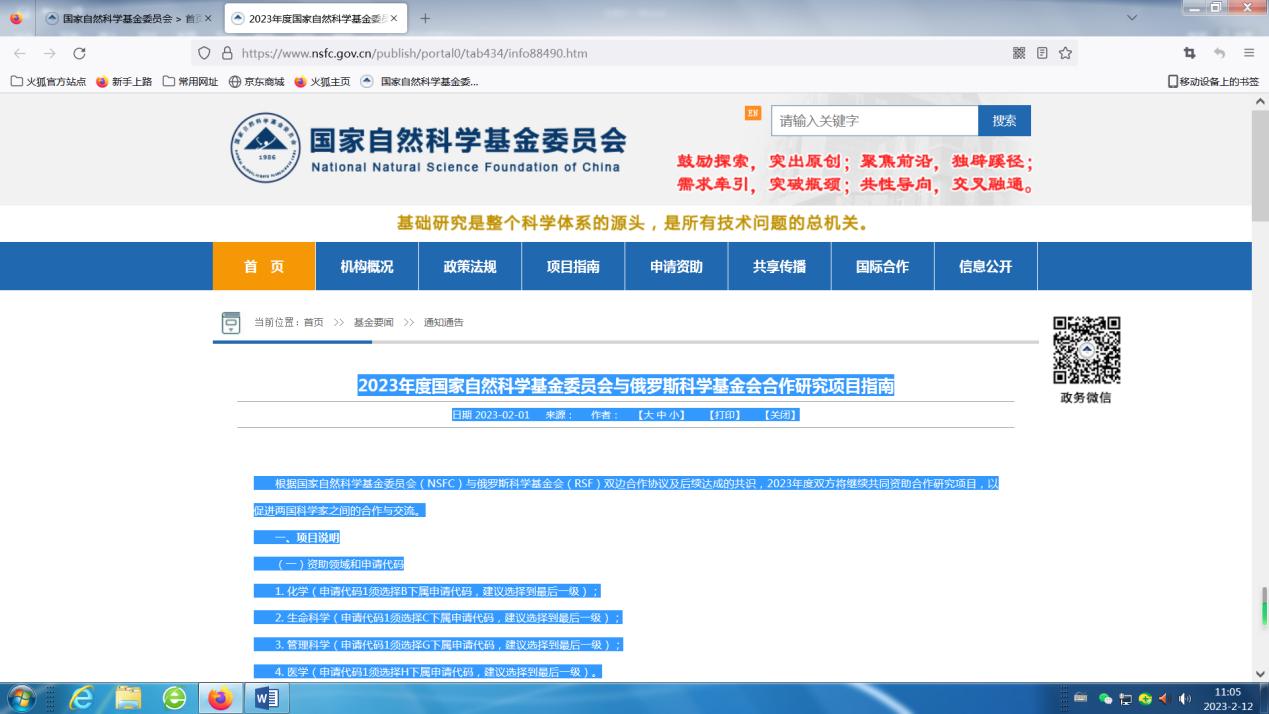 2023年度国家自然科学基金委员会与俄罗斯科学基金会