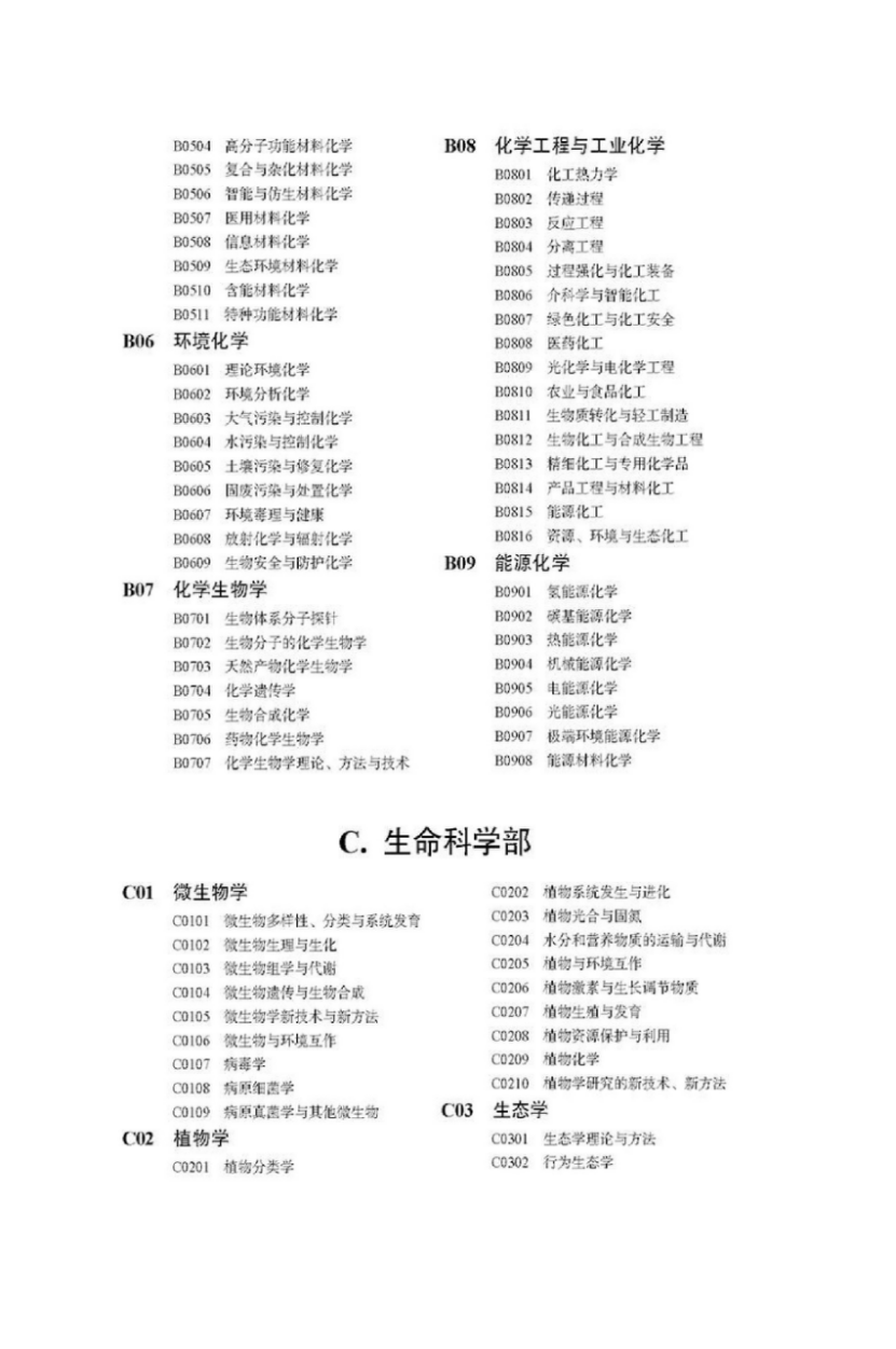 (三)每条指南建议须参照国家自然科学基金申请代码选择一个科学部,并明确至少一个二级申请代码。