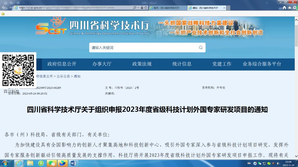 四川省科学技术厅关于组织申报2023年度省级科技计划外国专家研发项目的通知