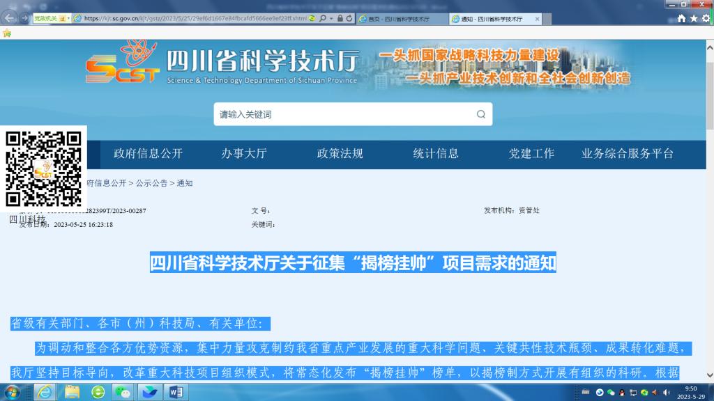 四川省科学技术厅关于征集“揭榜挂帅”项目需求的通知
