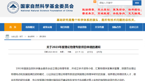 经理论物理专款学术领导小组会议确定,2023年度理论物理专款主要资助以下5个项目类型。